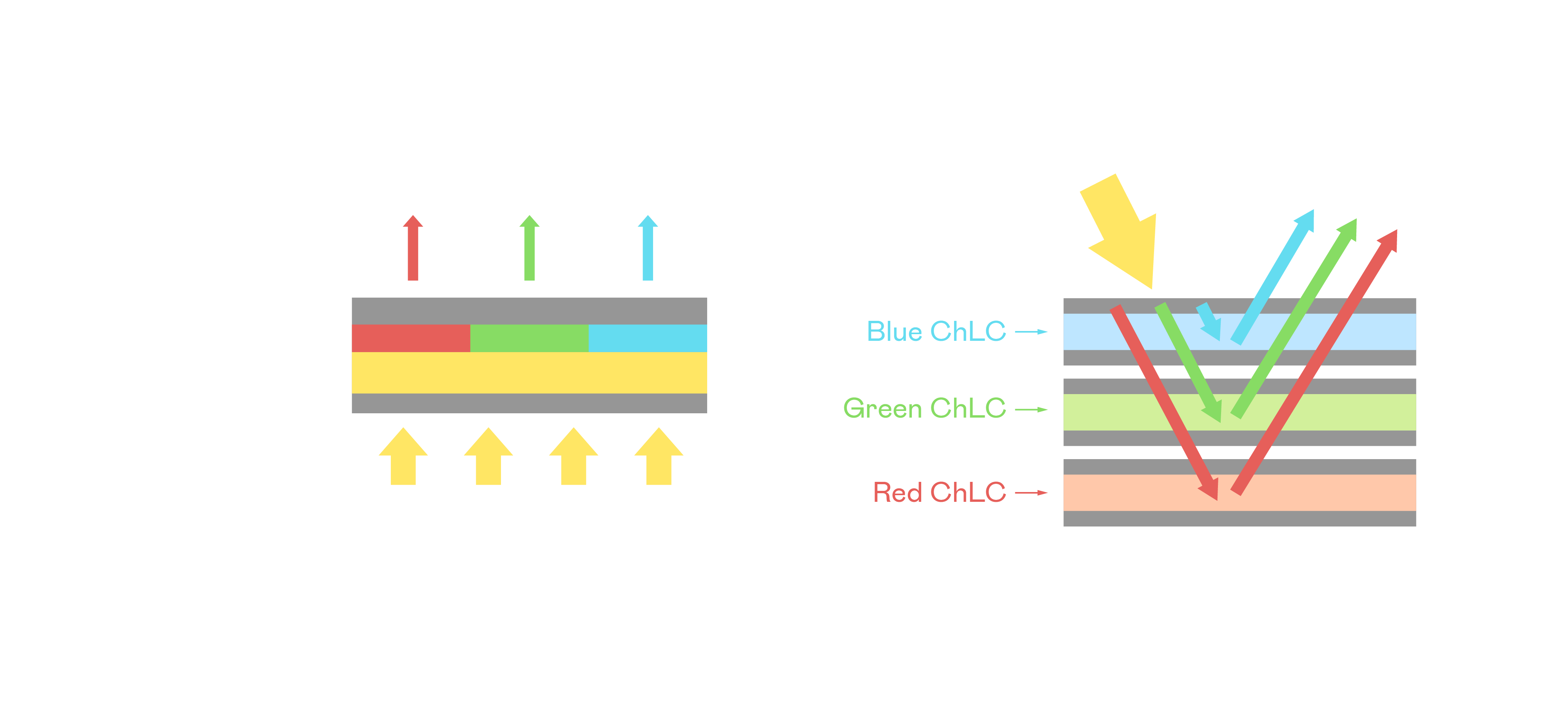 利来国际真人娱乐胆固醇液晶显示器是由红、绿、蓝三层胆固醇液晶面板堆叠而成,并采用无彩色滤光片设计,减少环境光在反射过程中的损耗。